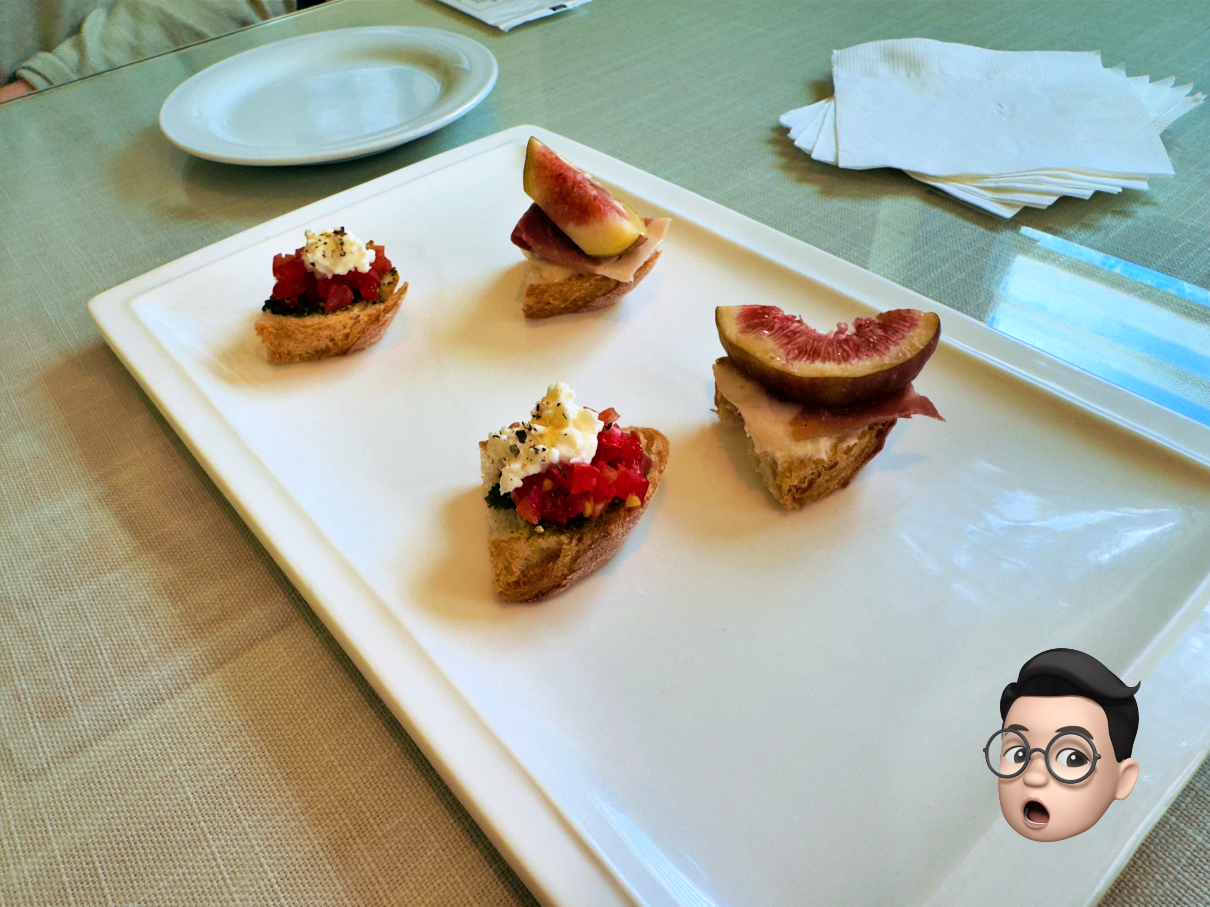 바게트에 토마토, 리코타 치즈가 올라간 것과 바케트에 생햄과 무화과가 올라간것이 나왔네요.