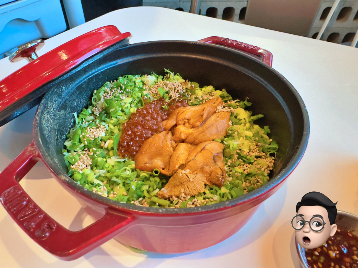 아낌없이 들어간 연어알과 성게는 입안에서 매우 즐거운 맛을 선사해 주었습니다.