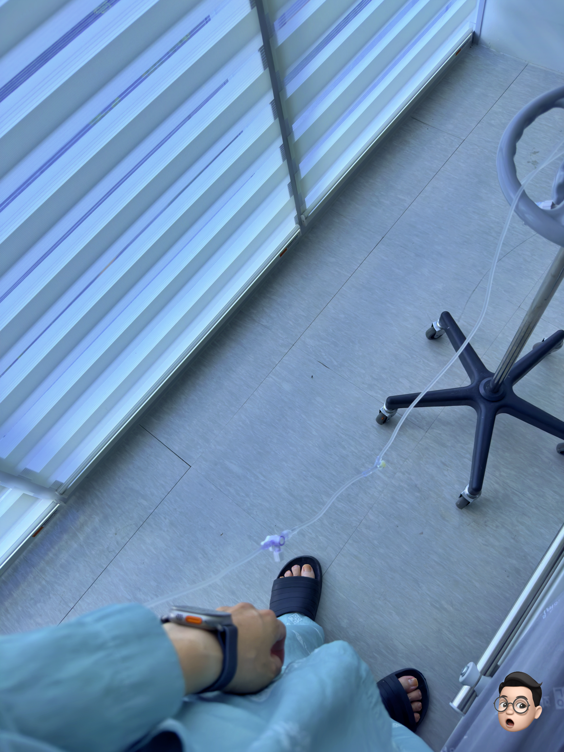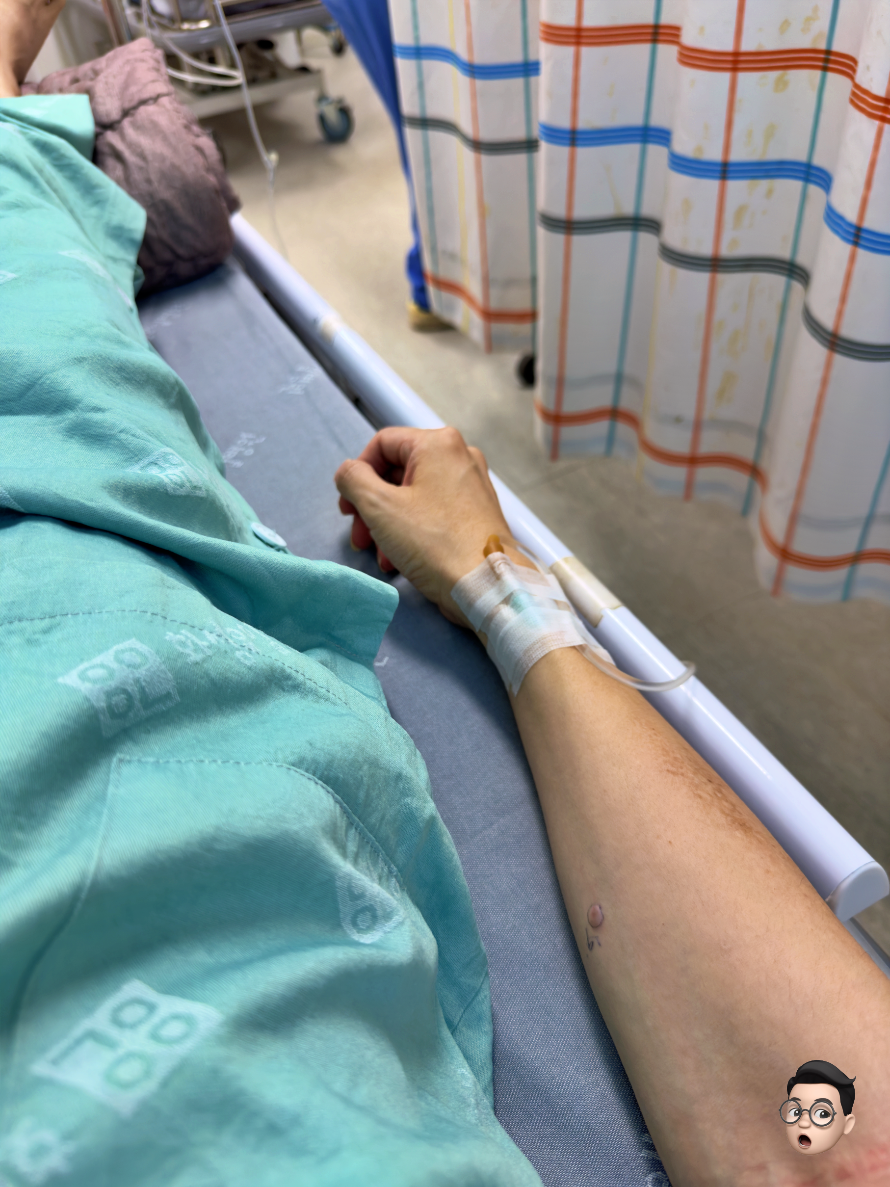 그래서 좀 더 정밀하게 검사하기 위해 피를 뽑고, CT 촬영을 위해 조영제를 넣고 있는 모습입니다.