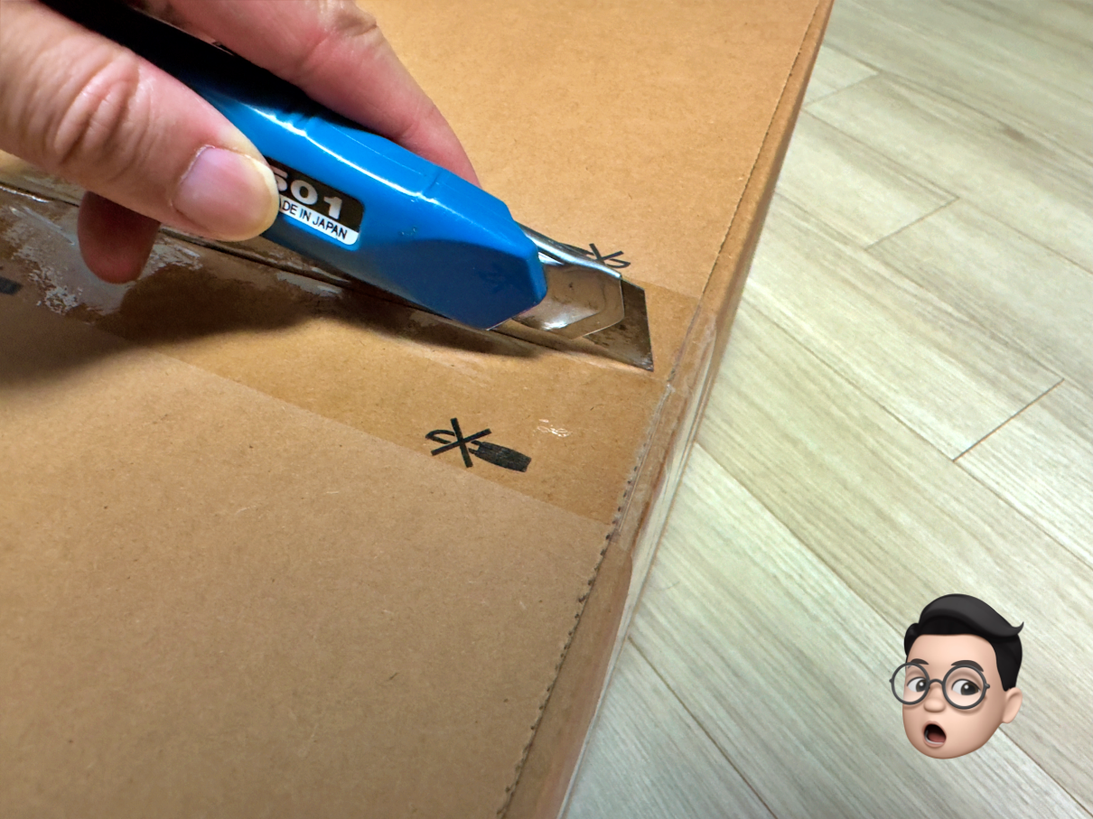대놓고 칼로 개봉을 하지 말라고 이미지가 있지만 아주 살짝만 칼날을 꺼내서 테이프만 정교하게 절단해 줍니다.