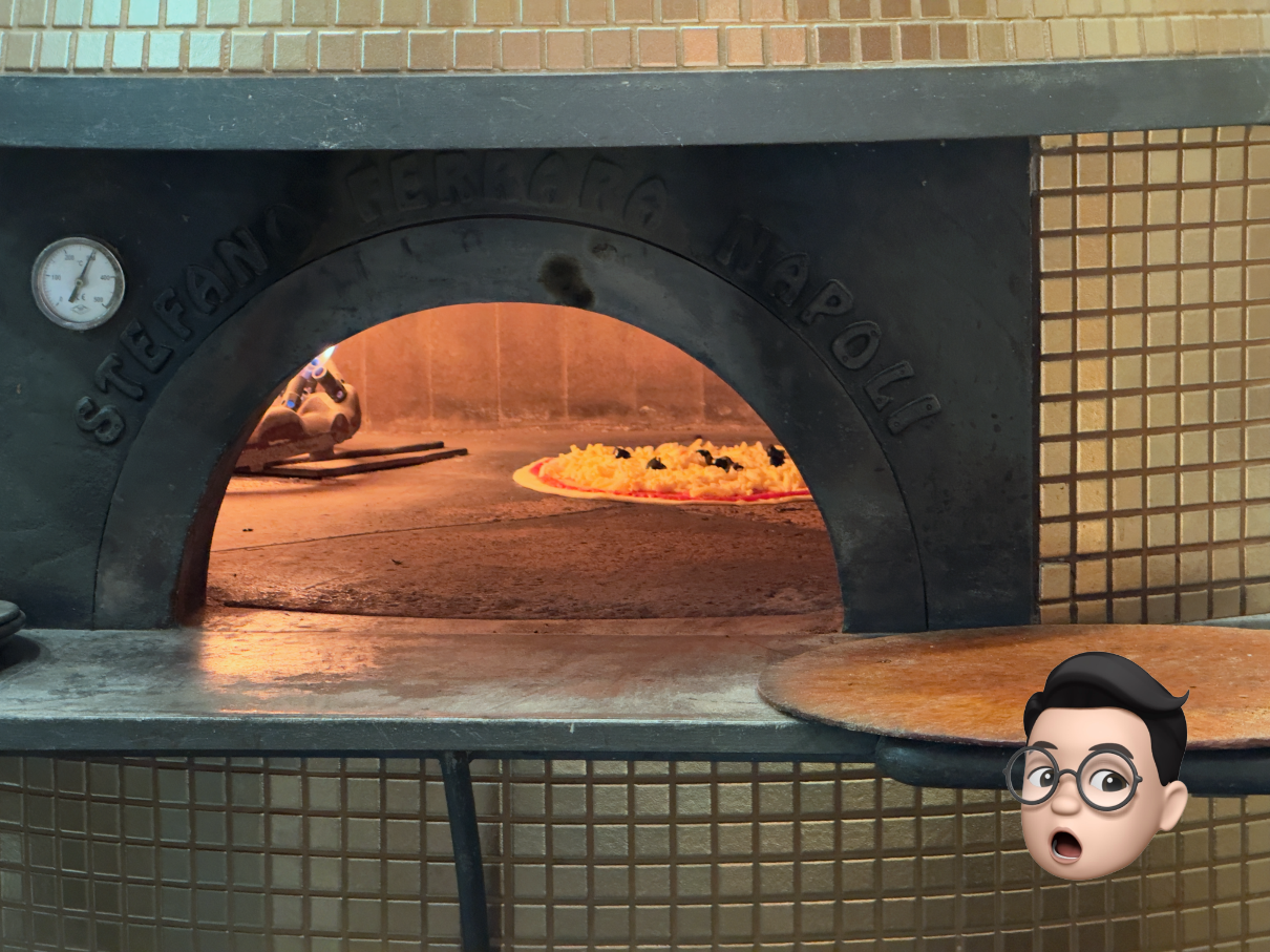 화덕에 우리가 주문한 피자가 들어가서 요리되고 있습니다.